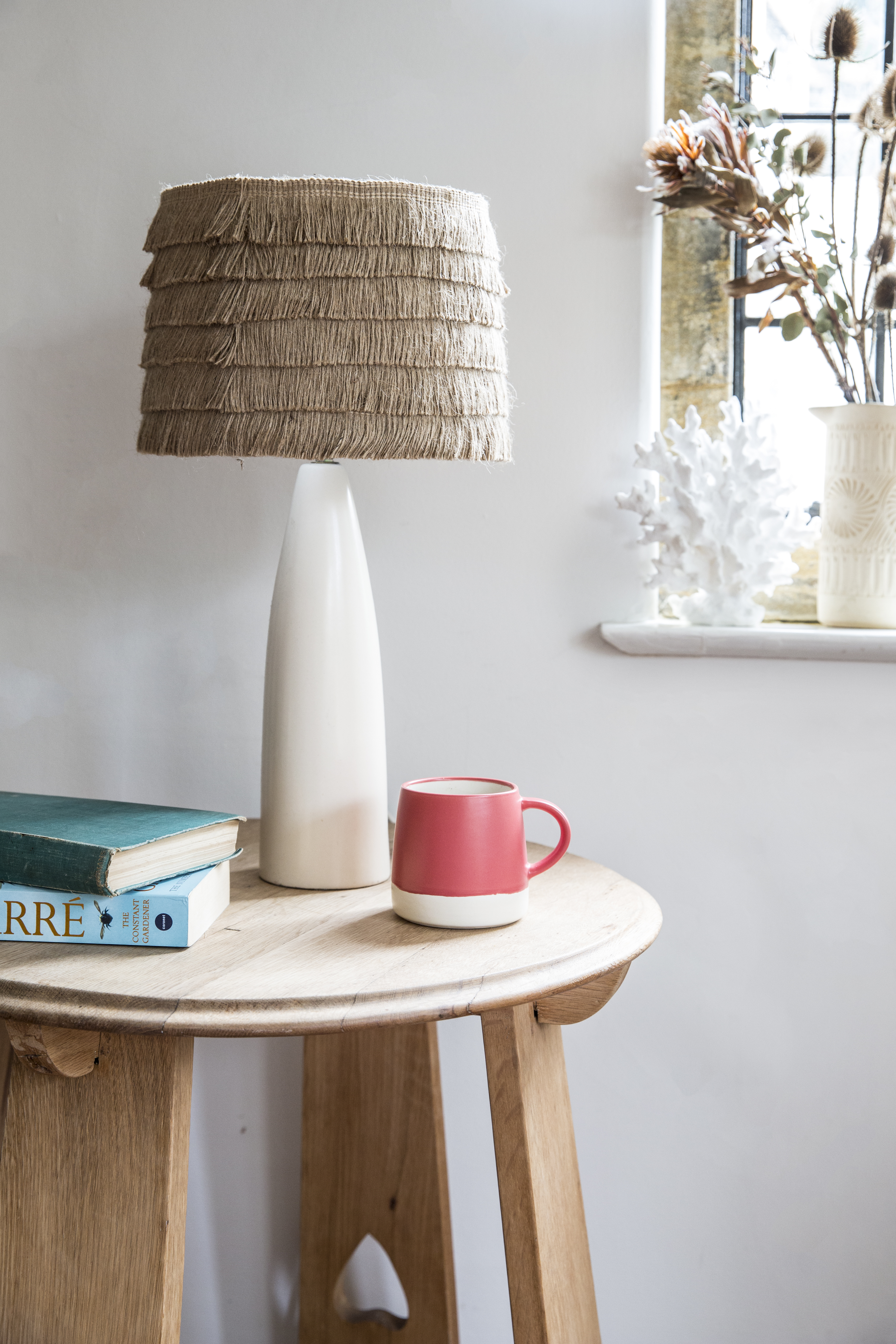 Hessian, Fringing and all things textural are still going strong as an interior trend. So I thought I’d buy some fringing and upcycle an old lampshade. I am very pleased with the result.