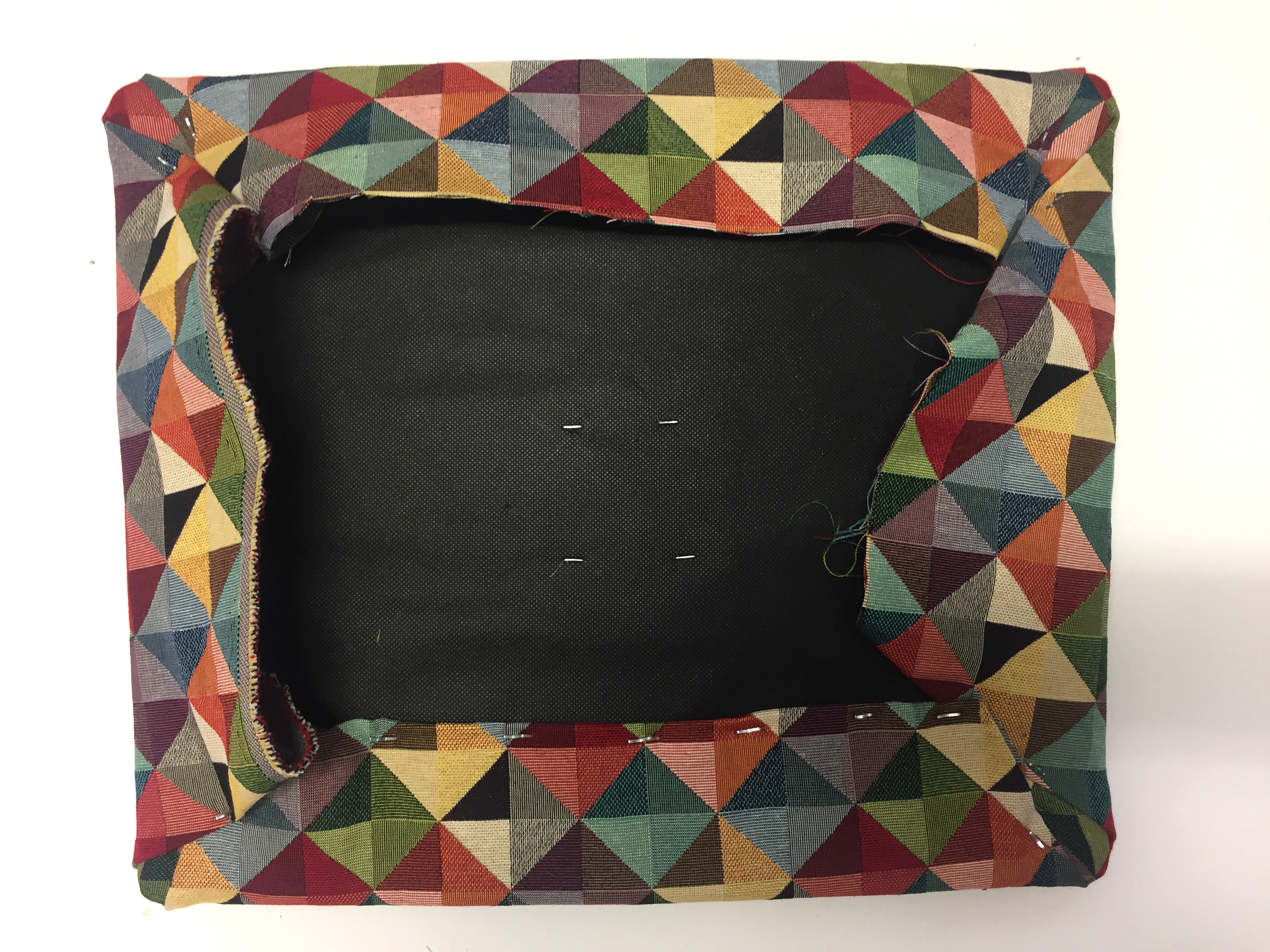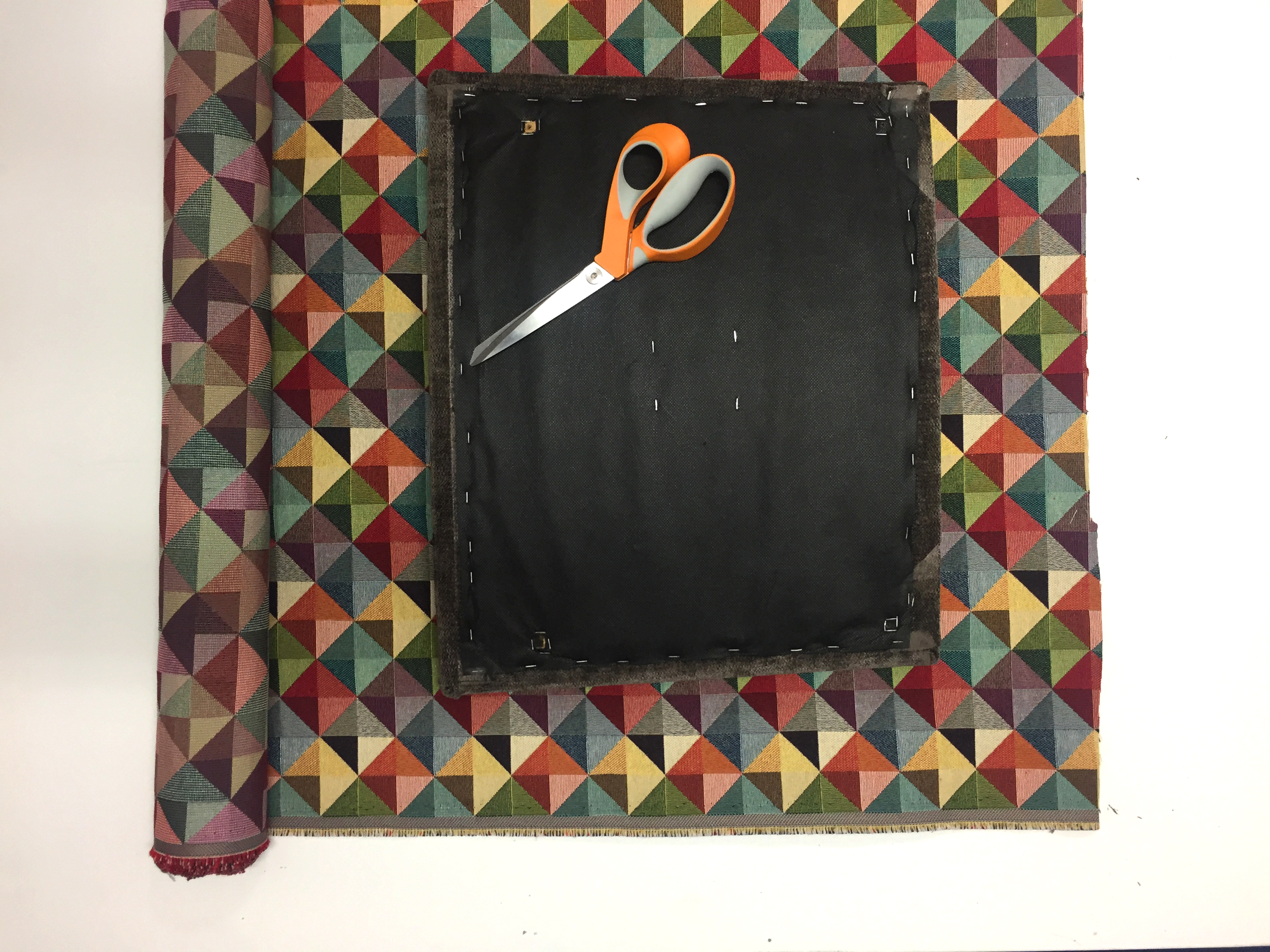 Place seat on fabric, and cut out the fabric including a 4in overlap.