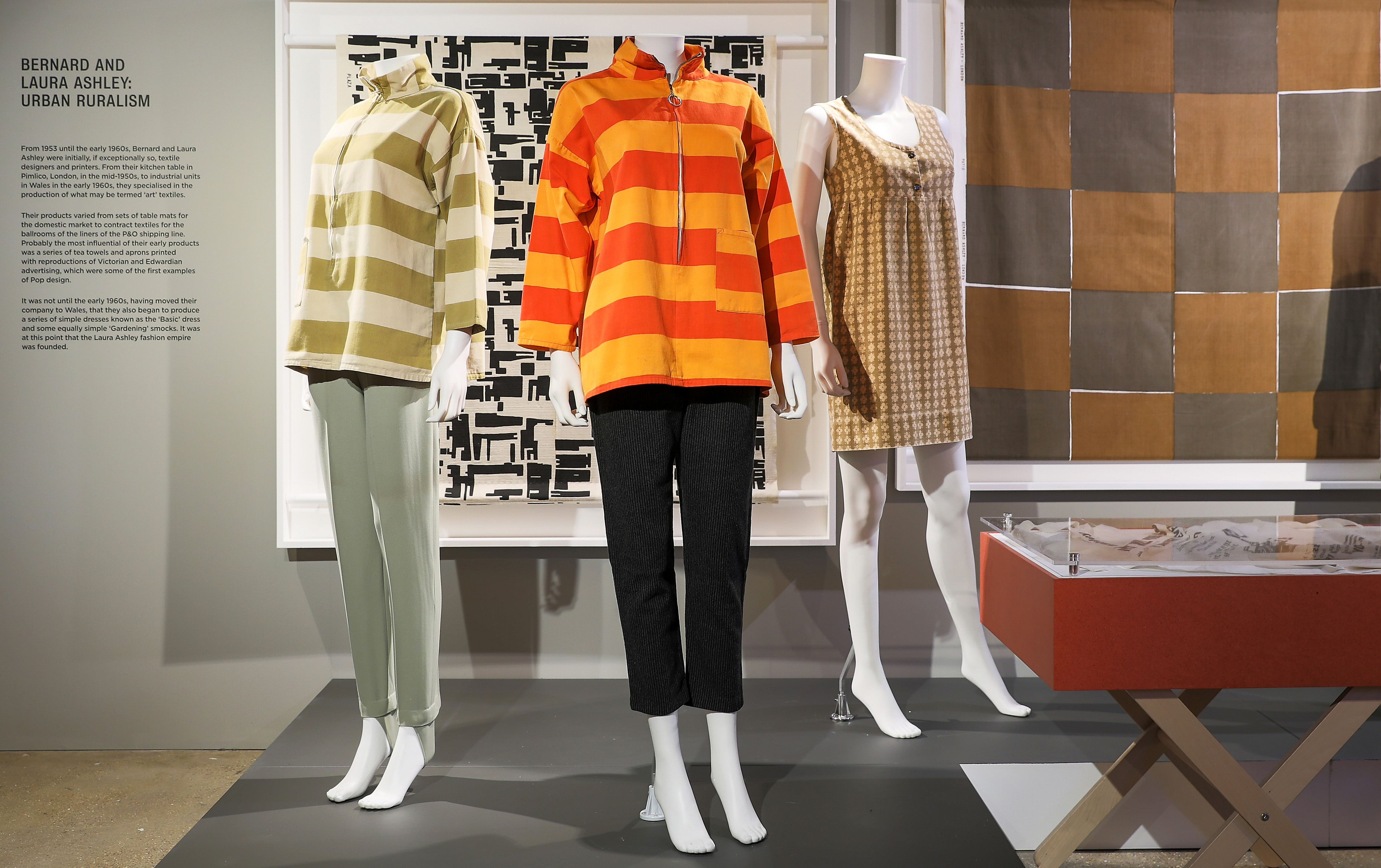 A treat is to see the early work of Bernard and Laura Ashley who from 1953 -1960’s produced furnishing ‘art’ textiles from their kitchen table in Pimlico. Yes this is the same Laura Ashley who had us all dressed as Victorian Milk Maids in the early nineteen seventies.
