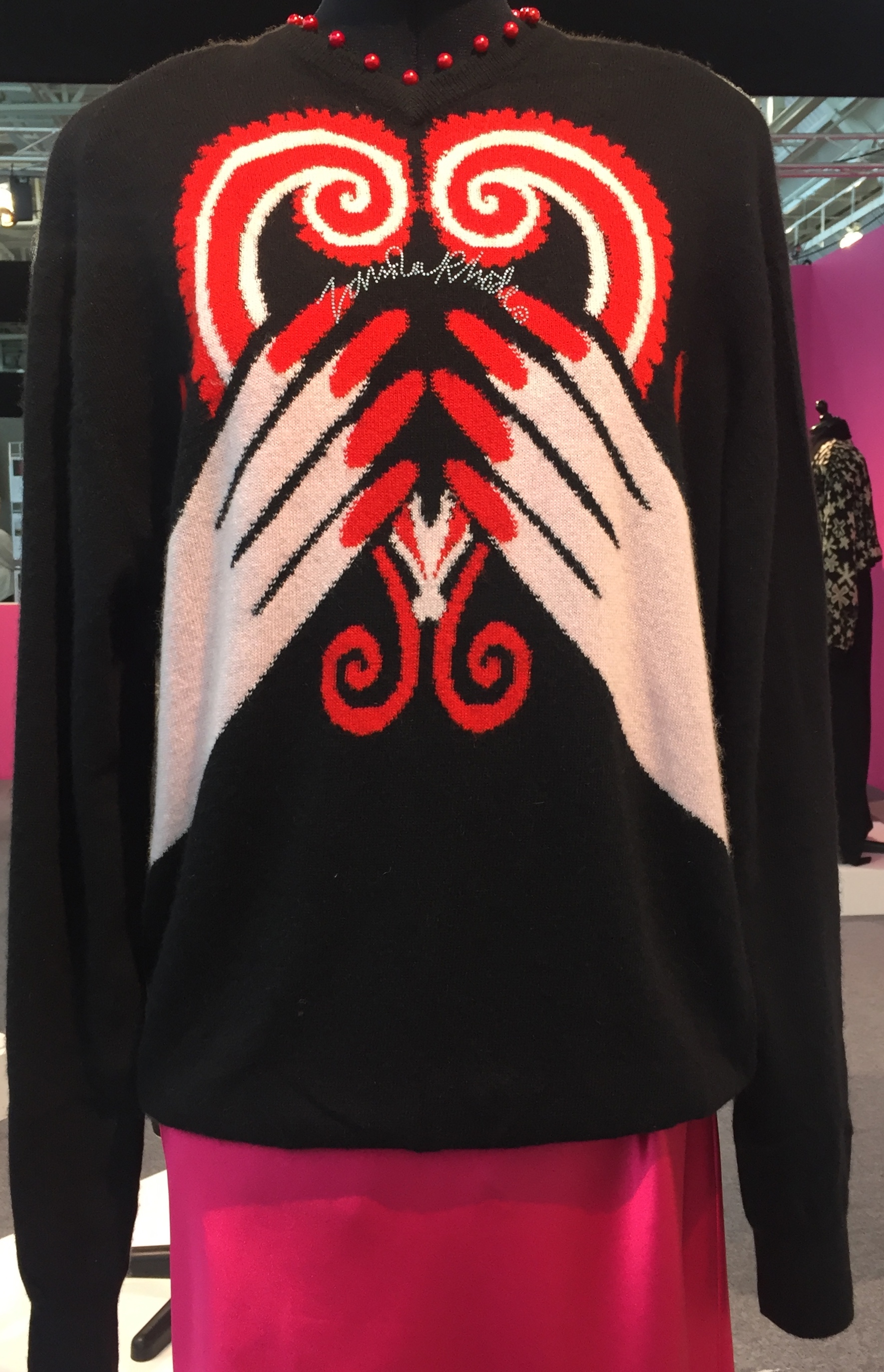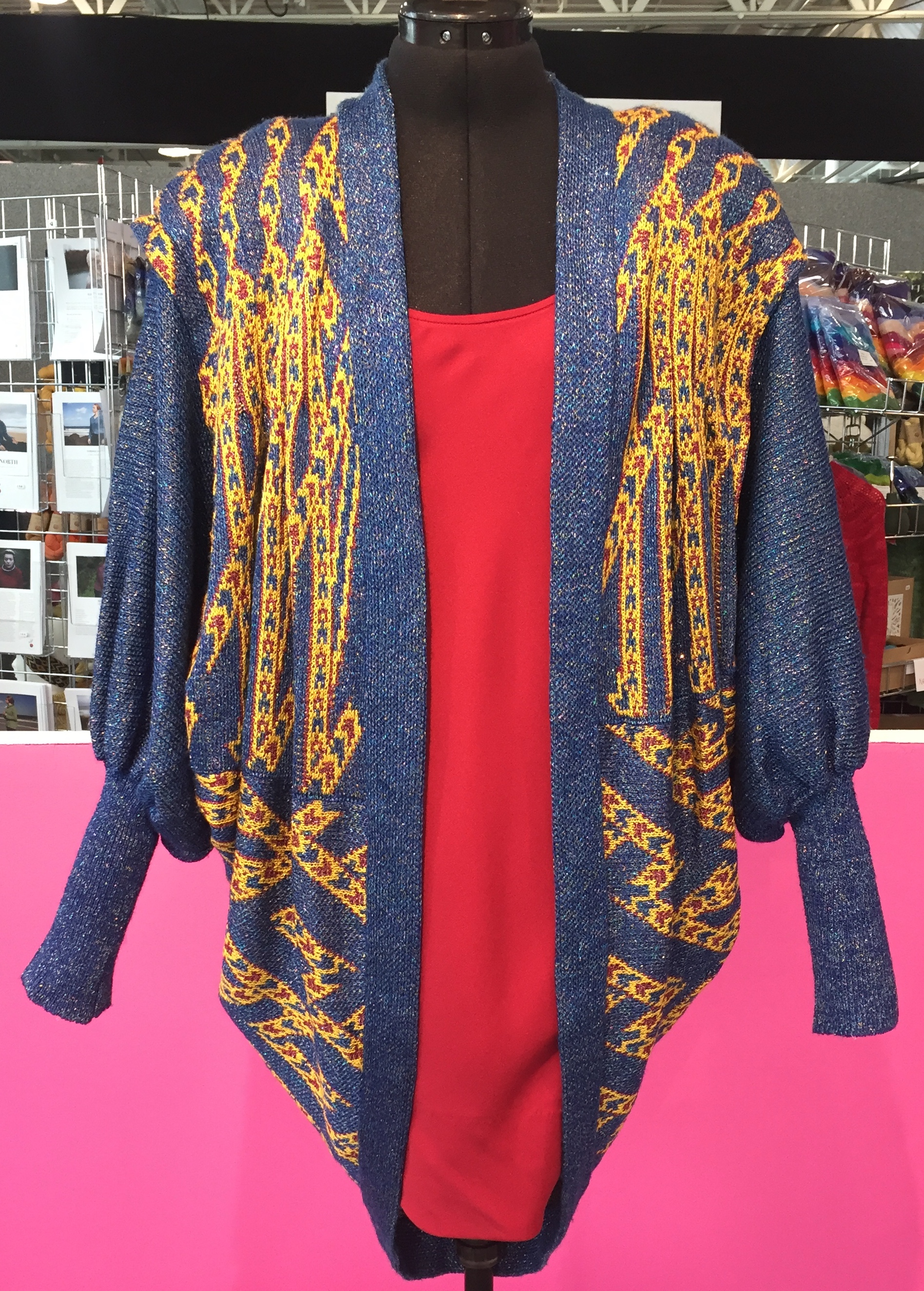Dame Zandra Rhodes selected ten, rarely seen, pieces of knitwear from her design archive as an exclusive for the Spring Knitting and Stitching show recently on at Olympia. Many of these pieces will be on show along with her beautiful textile designs and dresses in the exhibition 50 Years of Fabulous at the Fashion and Textile museum later this year. From 27th September to 26th January 2020