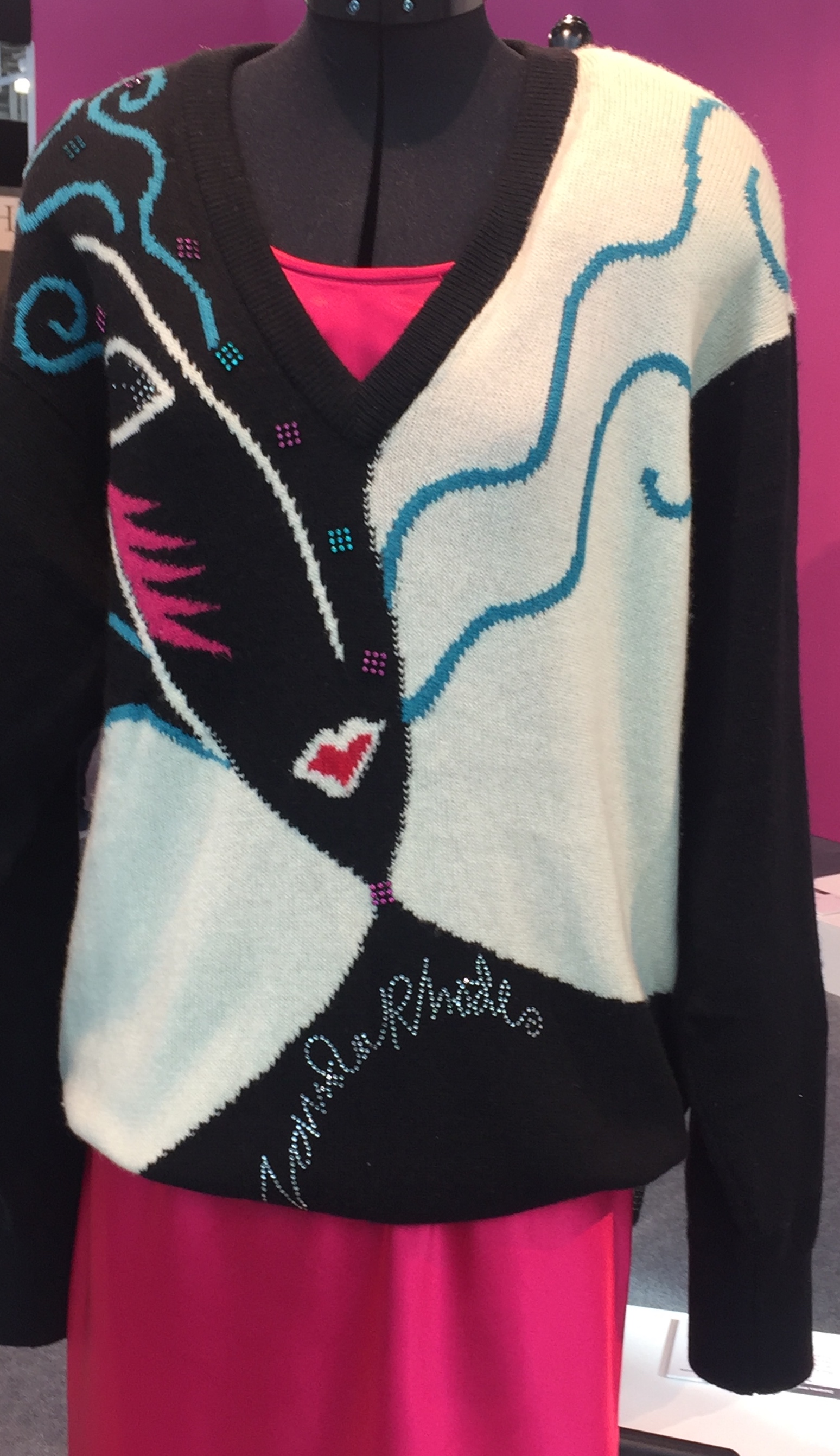 How interesting! I was reading your blog, and realized I have one of Zandra Rhodes sweaters from this collection in my closet! I’m going to try and upload a picture.