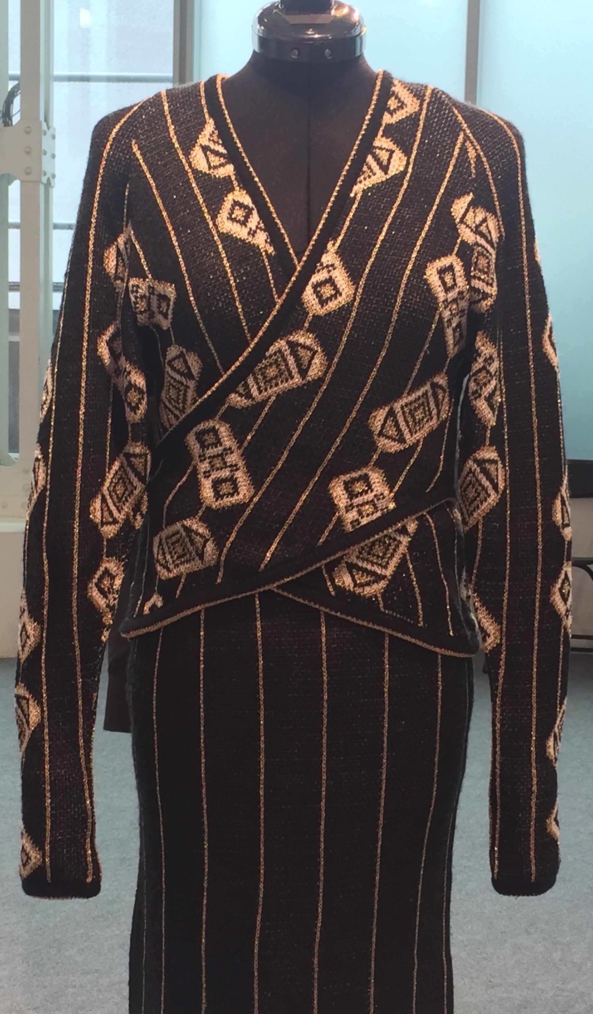 Intarsia cashmere machine knit Clan Douglas for Zandra Rhodes