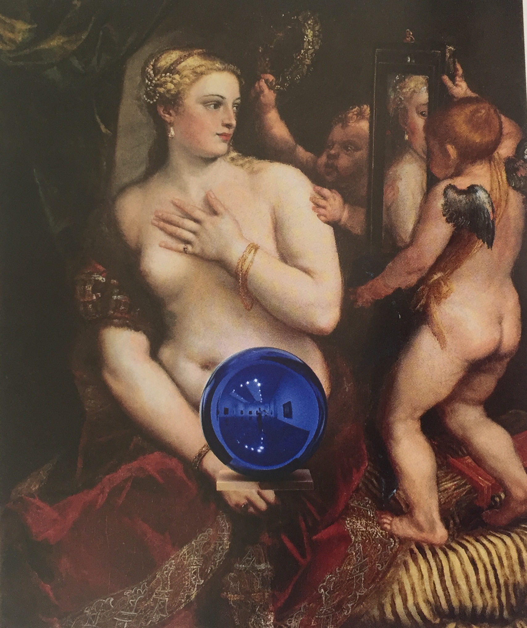 Shown in the UK for the first time are seven works from the series including Gazing Ball (Belvedere Torso) (2013), Gazing Ball (Gericault Raft of the Medusa) (2014–15), and Gazing Ball (Titian Diana and Actaeon) (2014–15).