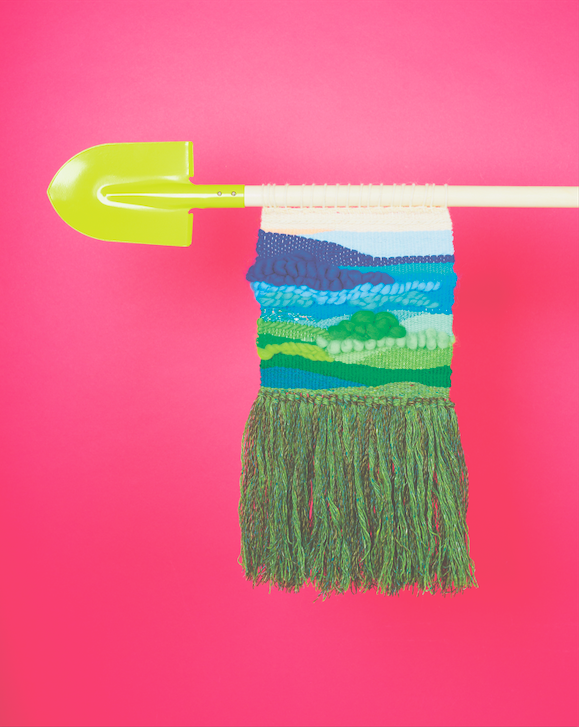 There are exciting and inventive ideas such as making a giant loom from a clothing rail or creating your own yarn from scraps of fabric. Tassel making is covered. One is shown how to weave a letter or even how to use a spade to create a wall hanging. Learn how to ice dye and to make a woven fringed back for a jacket.