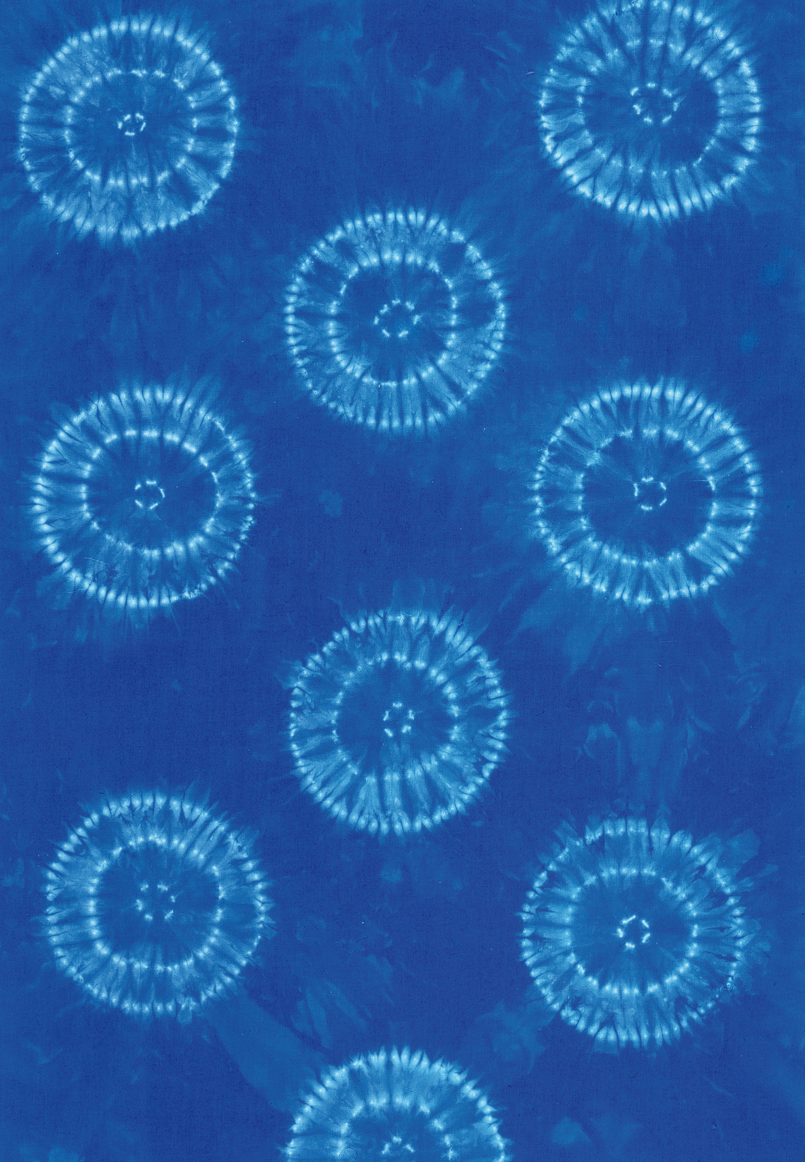 Stitched rings on a single layer of cotton cloth, Procion MX dye.