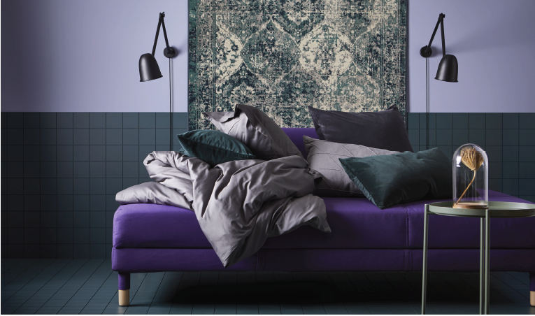 To make any room really stand out from the crowd this season pair complimentary colours together, such as red and green, and orange and blue. The ruby coloured STRANDMON wing chair, for example, create a luxurious look, perfect for getting cosy and reading a good book during the winter months. For a simpler change opt for something like the HILLEBORG curtains in a rich plum shade. Made from recycled PET bottles, they prove that sustainability and style can truly go hand in hand.
