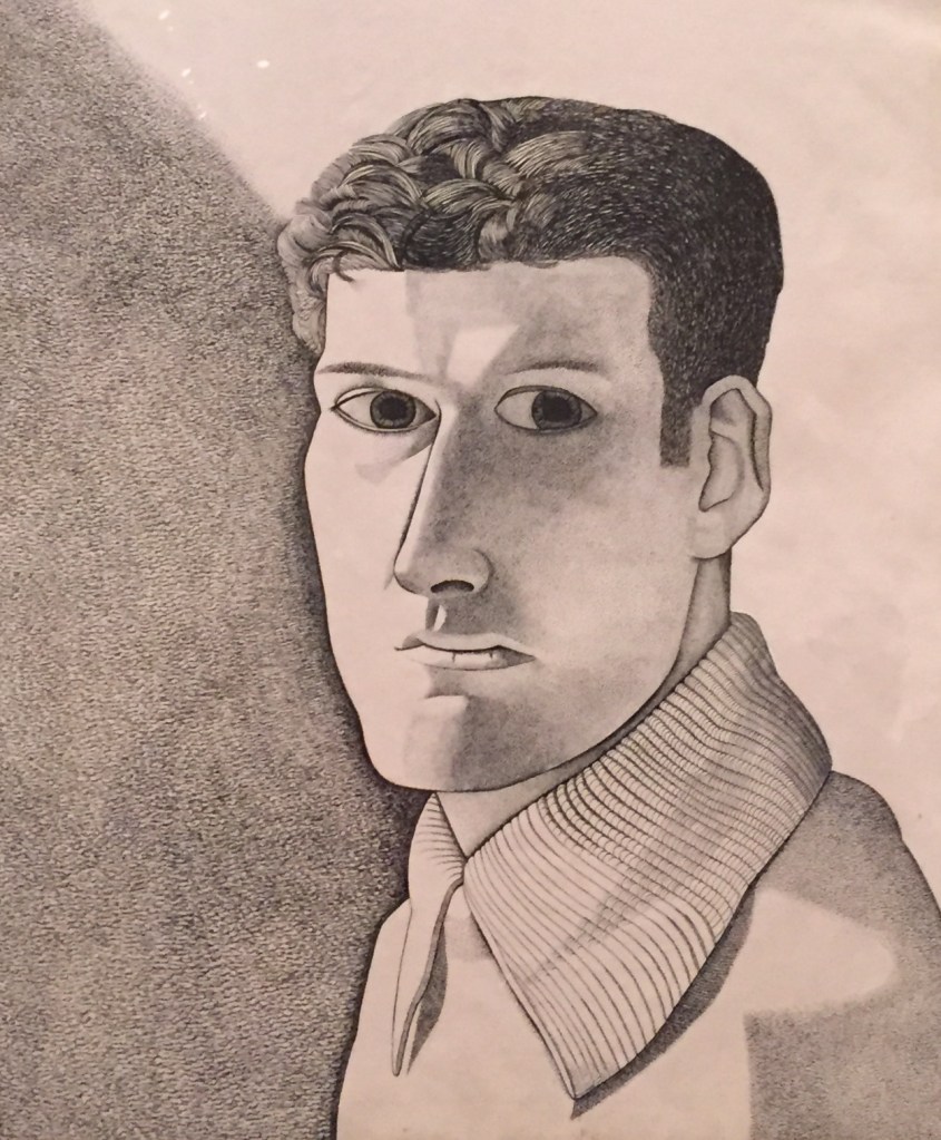 The first portraits are in pencil and or ink. Encouraged by his mother, Freud had drawn obsessively since childhood. His approach to painting at this time was marked by a preoccupation with line, combining expressive force with a quality of draughtsmanship that led the critic Herbert Read to describe him as the ‘Ingres of Existentialism”