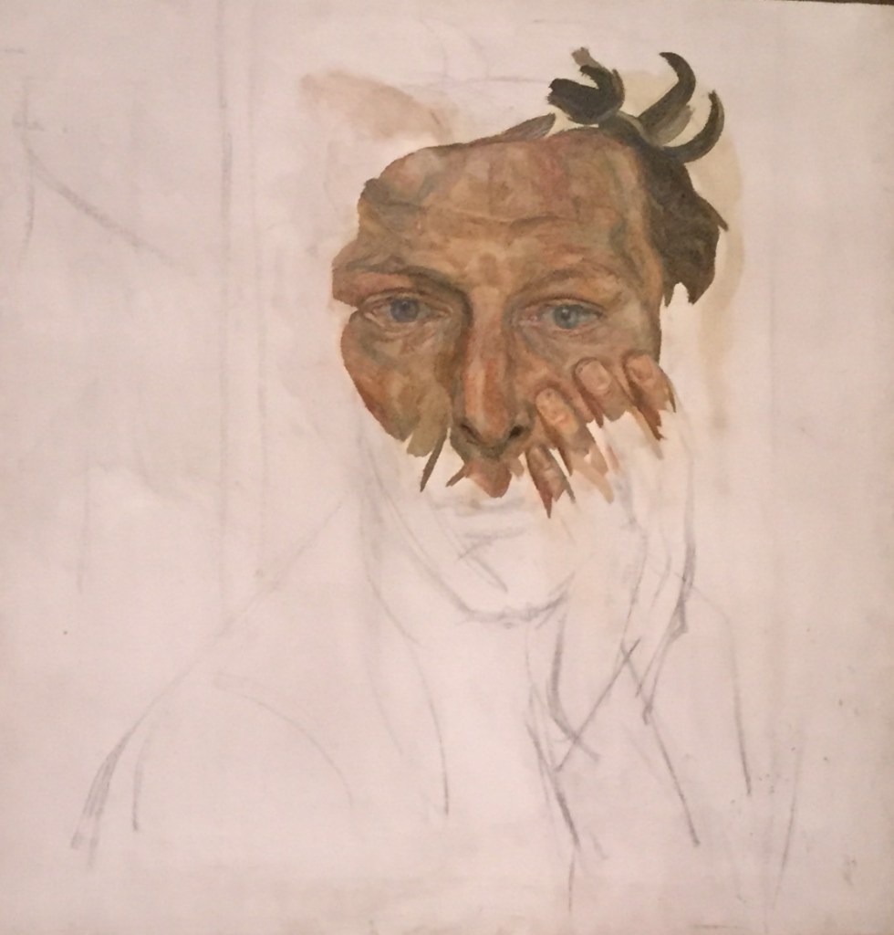 Between the 1950’s and the mid 1960’s Freud’s painting gradually freed up. In 1961 he took up using watercolours, replacing the linearity of pen and pencil with loose painterly washes.
