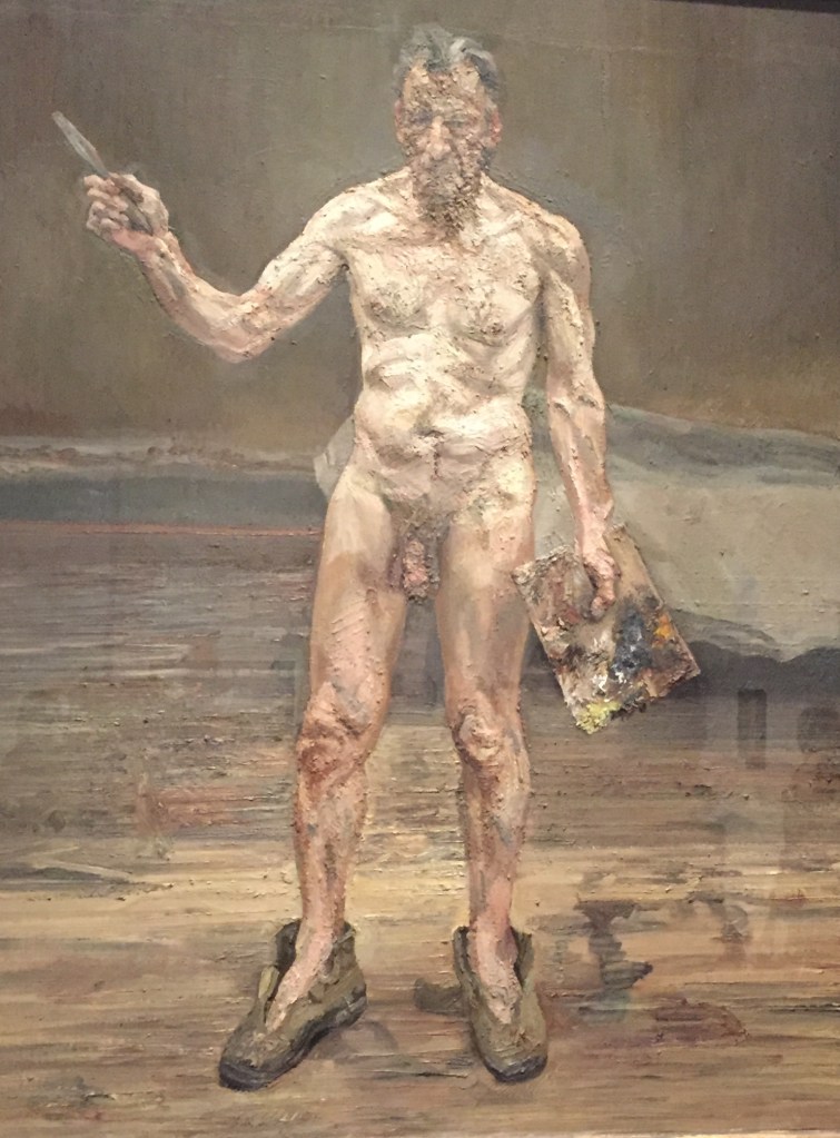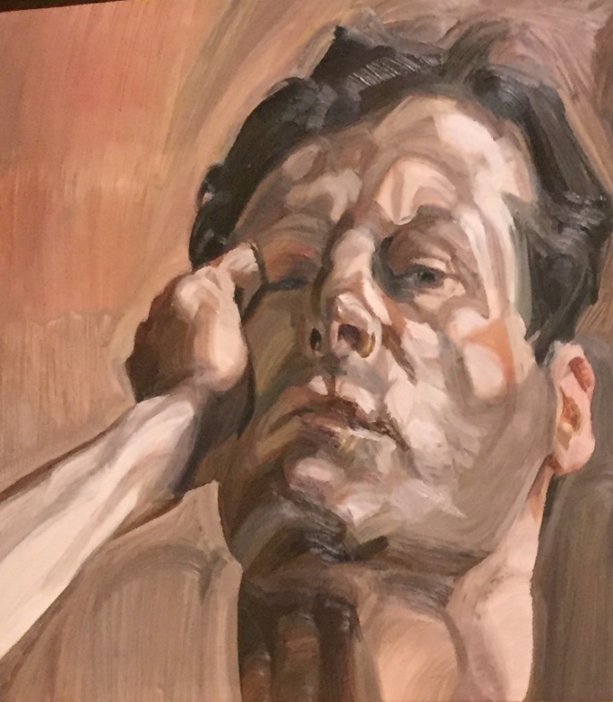 Freuds late self-portraits become increasingly built up with thick layers of paint sometimes smoothed at others scratched as though responding to the changes in his physical appearance. He almost disappears into the surface. there is a narrowing of the space between the painter and his work. This is a very popular exciting exhibition and you will need to book to see it.