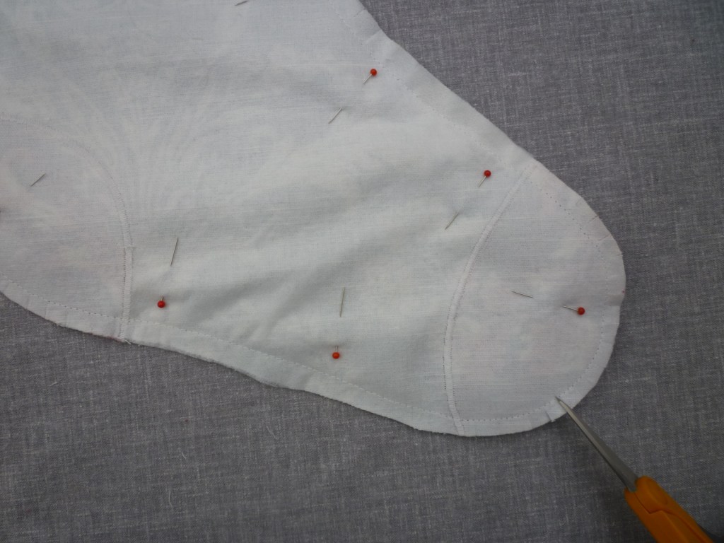 Step 5: With right sides facing, pin the two stocking pieces together. Leaving the top of the stocking open sew around using a 1cm seam allowance. Trim the seams and clip the curves.
