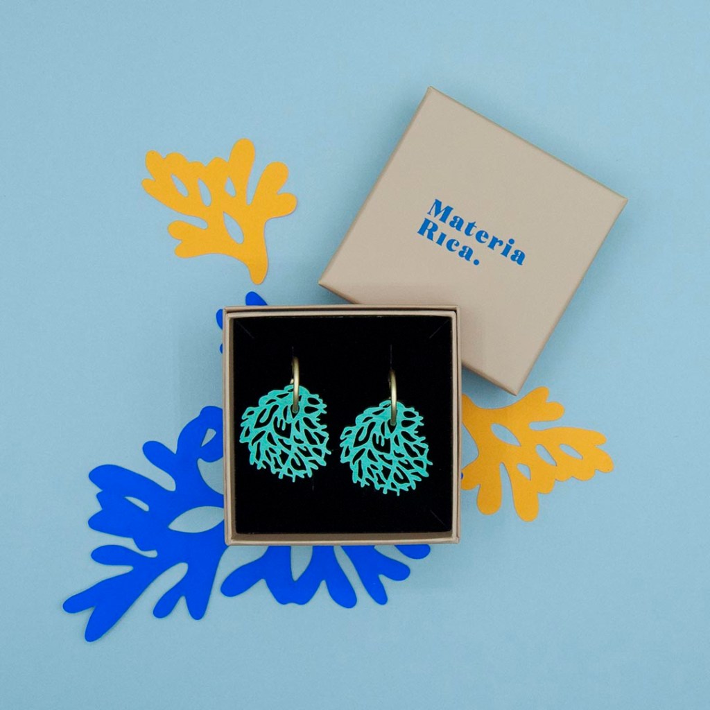 www.materiarica.com are a husband and wife design team who laser cut walnut which they are then paint to make very imaginative jewellery. Their motto is Choose Your Style, Wear Your Story. Here is their story :