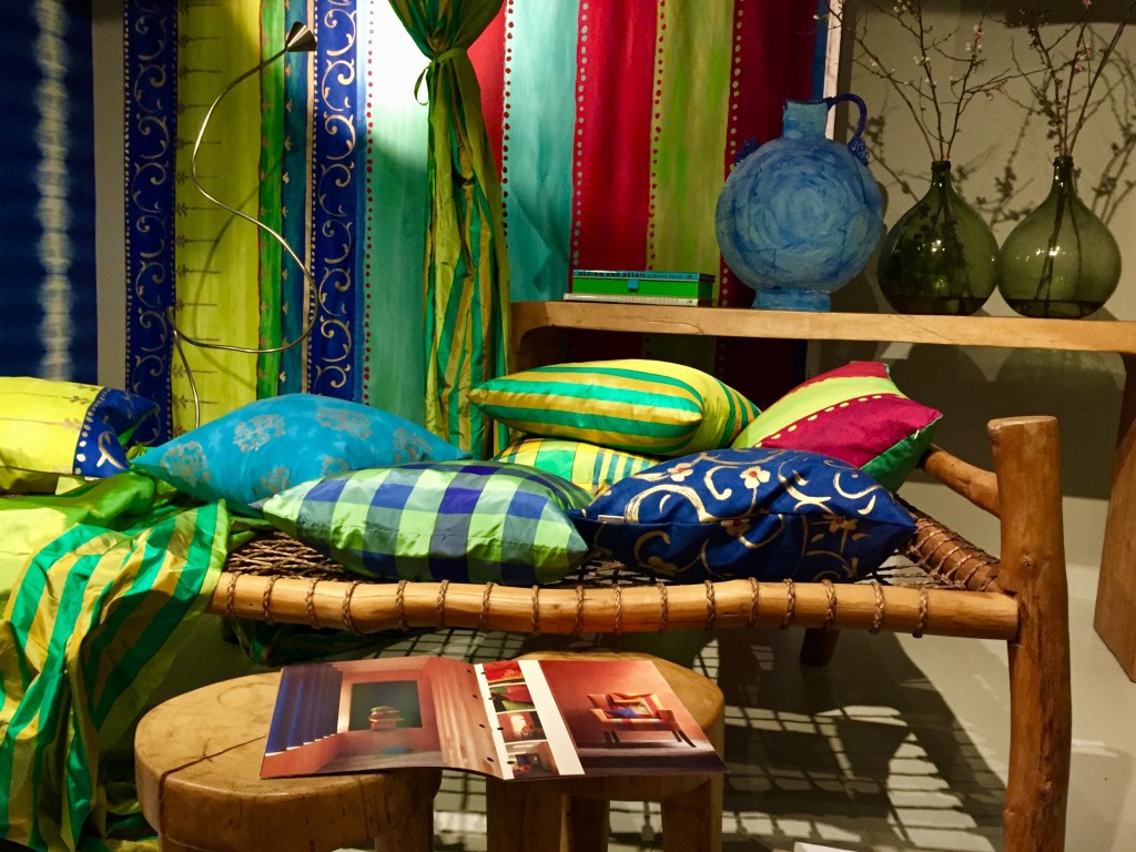From the outset, Guild knew she had to show people how to use her products and thus displays and photography of her new collections are vital tools for communicating the total effect. She has produced many books over the years and has emphasised the importance of plain and semi plain fabrics as being integral to the whole Guild look. Their importance were captured by Elizabeth Wilhide the co-writer of Tricia Guild’s new soft furnishings, which was issued six times between 1990 and 1997 published by Conran Octopus.