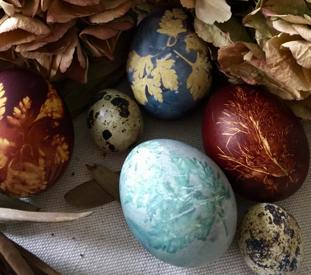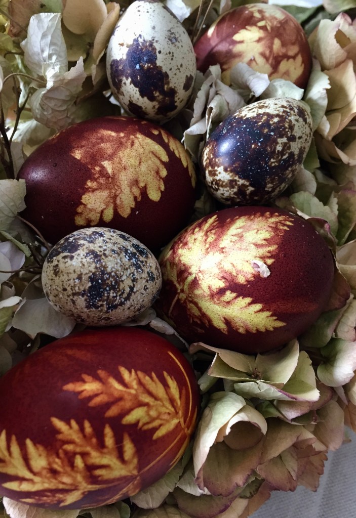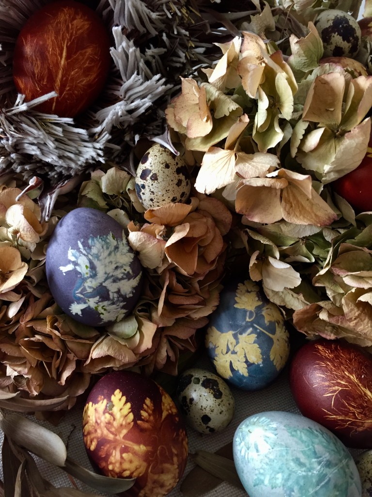 These eggs are dyed using just onion skins and red cabbage. It is so simple to do and very effective.