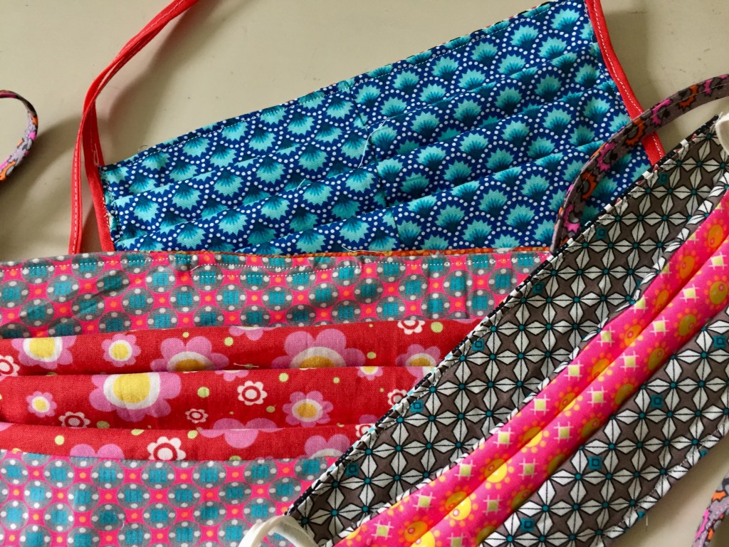 Since, like the rest of the world, I have been in lock down I have had some time to do research into face mask making, to protect from Covid 19. I was going to create my own pattern but as there are so many mask patterns and videos on line, I decided not to reinvent the wheel. So I used Amanda Perna‘s pattern and gave it my original twist. These masks are reversible.