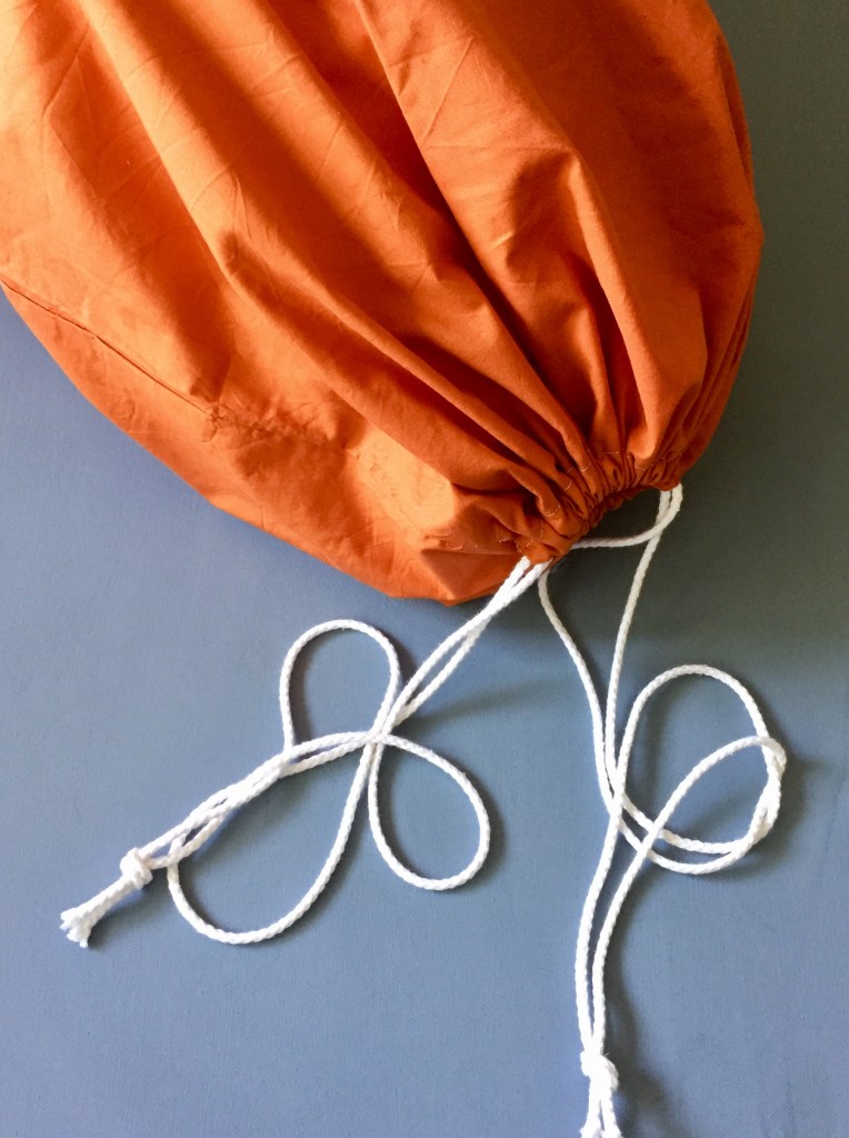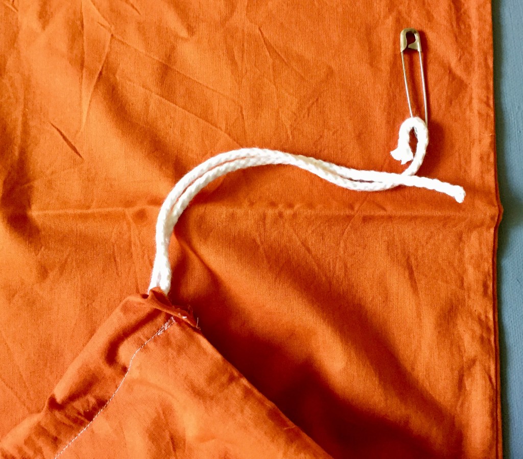 Since my original post I have been experimenting. I ran out of cord for draw strings and the inspiring new Korbond Marketing Coordinator, Francesca Huggett, https://www.korbond.co.uk/ suggested perhaps sports shoe laces might work as drawstrings. These work brilliantly and do away with the need for a safety pin pusher as, the the laces have rigid ends, they can easily be pushed through the channel before being tied together.