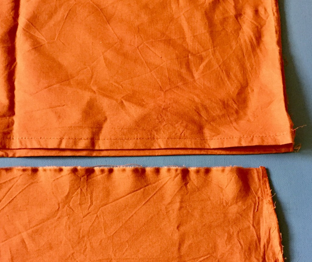 Where, you unpicked the flap there will be an opening on either side of the pillowcase, turn the pillowcase inside out and then pin and sew up the side seams to within 6cm of the top edges.