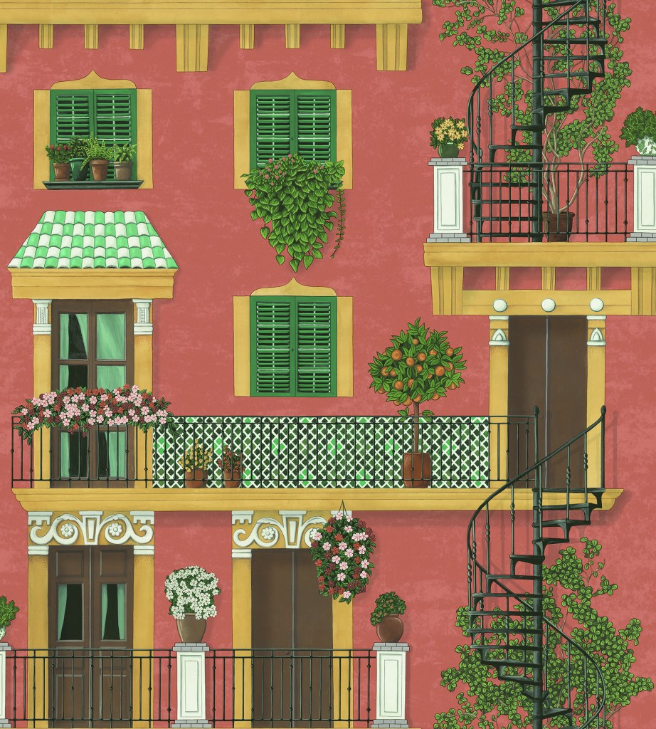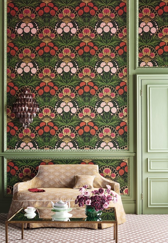 Flourishing in Seville’s temperate climate, geraniums can be found adorning balconies as well as creating vibrant bursts of colour throughout parks and cultivated gardens. This archive design was completely redrawn and repainted by the Cole & Son design studio to enhance the lush, robust fanned leaves and blooming clusters of bright petals.