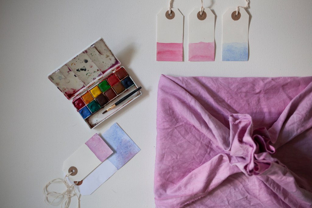 Water colours small white labels and some string twine or ribbon to tie the parcel.
