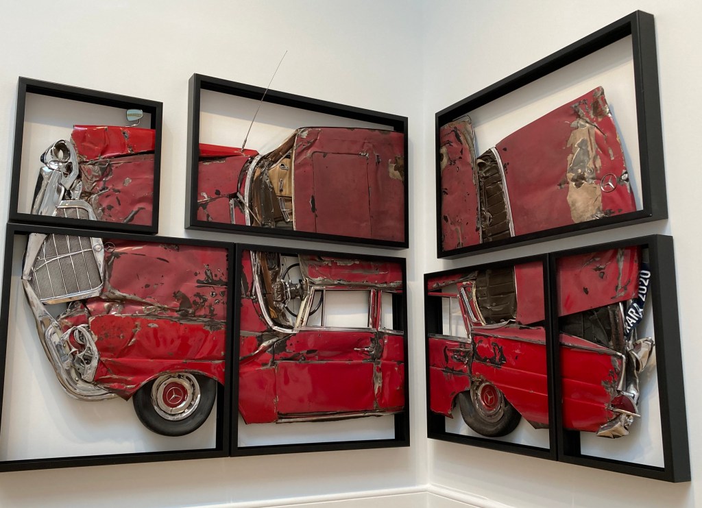 Ron Arad has produced a mixed media piece which in essence appears to be sections of squashed car , made from Steel, rubber and paint it is called oh Lord Won’t You Buy Me?