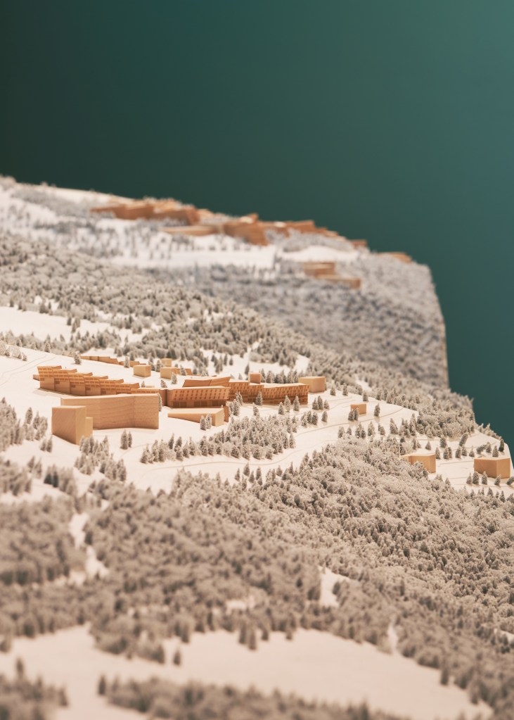 Being a designer in post war Europe was an exciting time to be involved in the reconstruction and modernisation that was going on. Perriand designed interiors for student dormitories in Paris and Air France offices around the world; but her crowning achievement was the Ski resort of Les Arcs. This is where she brought to fruition her vision of design, architecture and landscaping coming together as an integrated whole. She collaborated with architect Gaston Regairaz and many engineers including Jean Prouvé, but it was Perriand who took the creative lead. She had already worked on two previous ski resorts during the 1950s and 60s. Les Arcs was on a much larger scale. Accommodating 30,000 people, it was built at three different altitudes, 1600, 1800, 2000 meters. Work began in 1967 and took more than twenty years to complete.